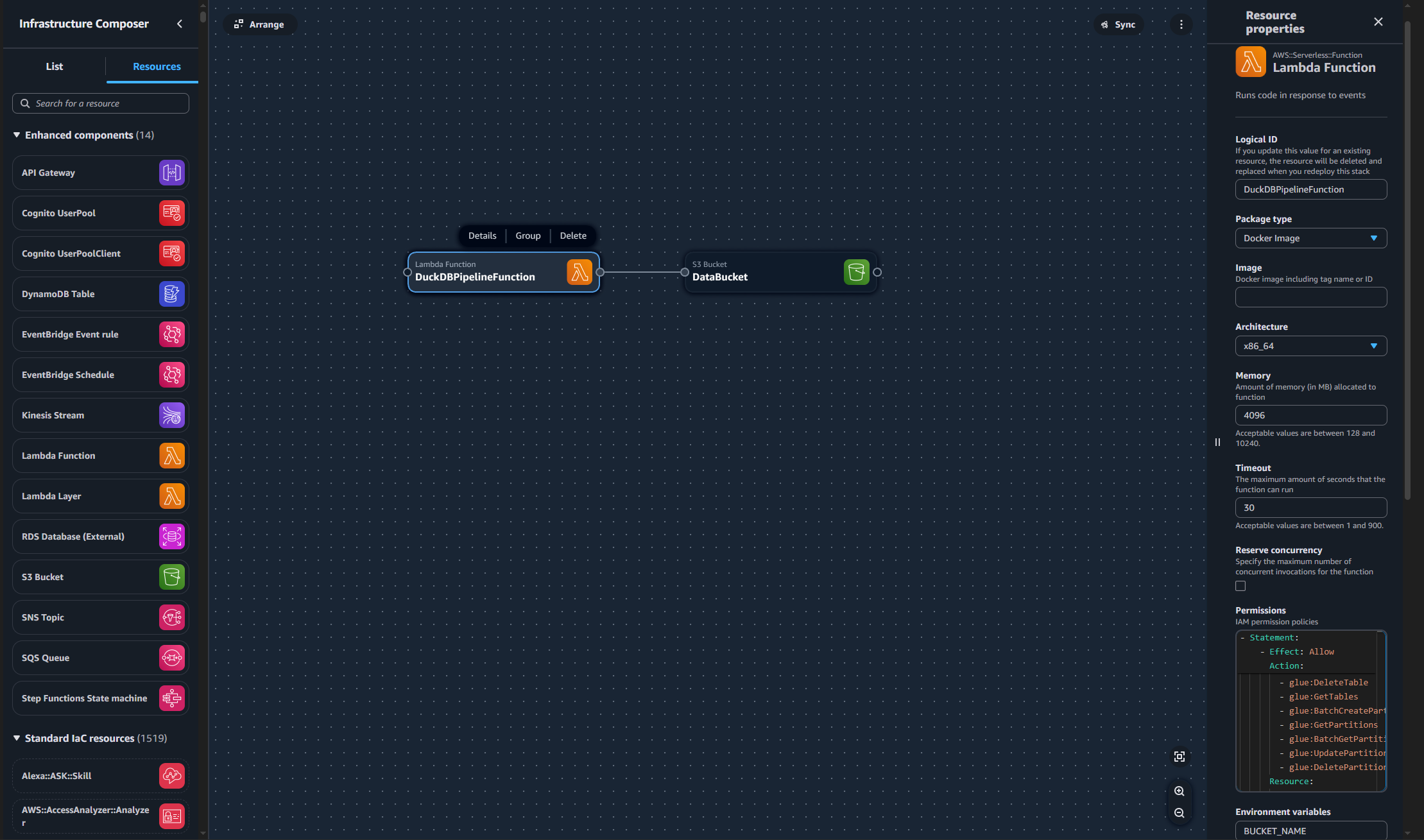 - Lambda Memory: 4096 MB. DuckDB in-memory çalıştığı için yüksek memory ihtiyacı var.