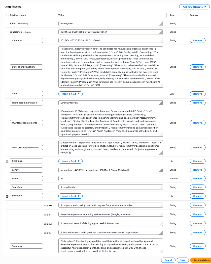 Aday değerlendirme sonucu ve DynamoDB'ye kaydı