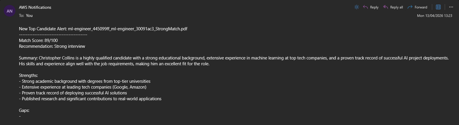 Bu projede serverless mimari ile üretken yapay zekayı, işe alım gibi gerçek bir kullanım senaryosunda bir araya getirmeye çalıştım. S3, Lambda, Bedrock ve DynamoDB kullanarak CV’leri otomatik işleyen ve değerlendiren uçtan uca bir akış kurmak mümkün oldu. Kritik nokta mimariden çok değerlendirme mantığıydı. Özellikle modelin gereğinden yüksek puan verme eğilimi ister istemez prompt tasarımını ve çıktı kontrolünü işin merkezine taşıdı. Genel olarak bu çalışma, hem Amazon Bedrock’u pratikte denemek hem de serverless servislerle hızlıca çalışan bir prototip çıkarmak açısından benim için faydalı bir deneyim oldu.